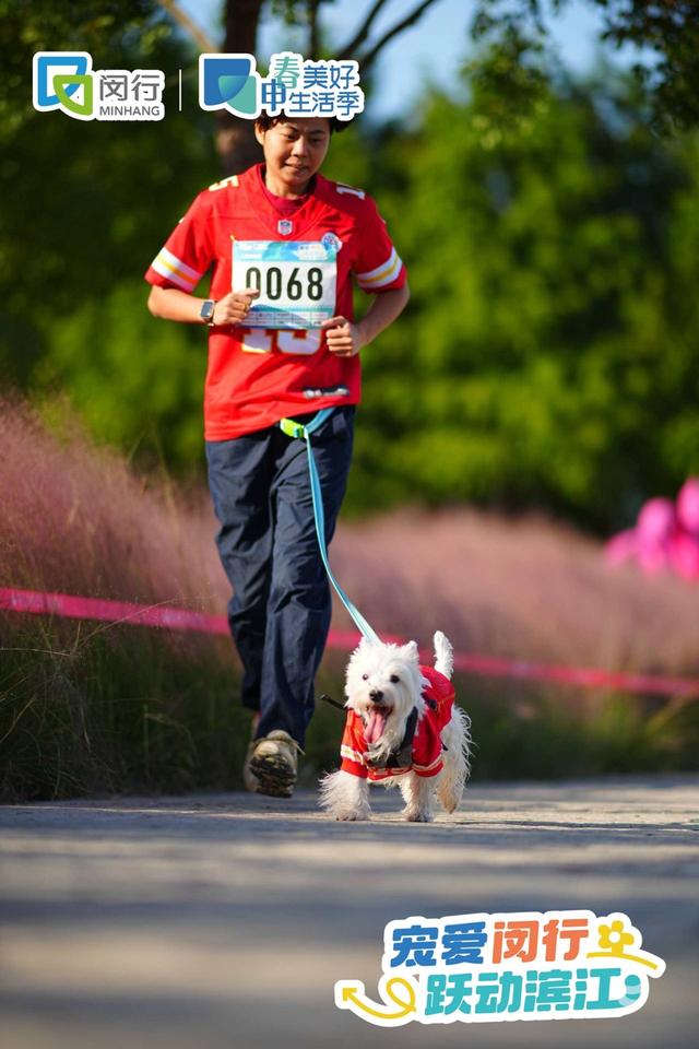 开幕式后,人宠友好马拉松赛事在浦江郊野公园激情开赛,约200组携宠家庭在1公里、2公里两条精心设计的赛道上尽情狂欢,体验“跑道即风景”的幸福。