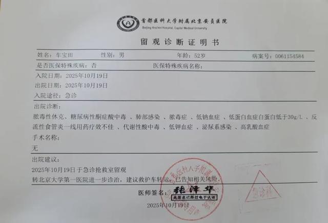 据车宝田朋友李家瑞透露,车宝田于上周日(10月19日)在朋友家中时突感不适,被紧急送往安贞医院通州院区,后转至潞河医院抢救,目前正在接受治疗。经检查由于因糖尿病并发症突发所致。