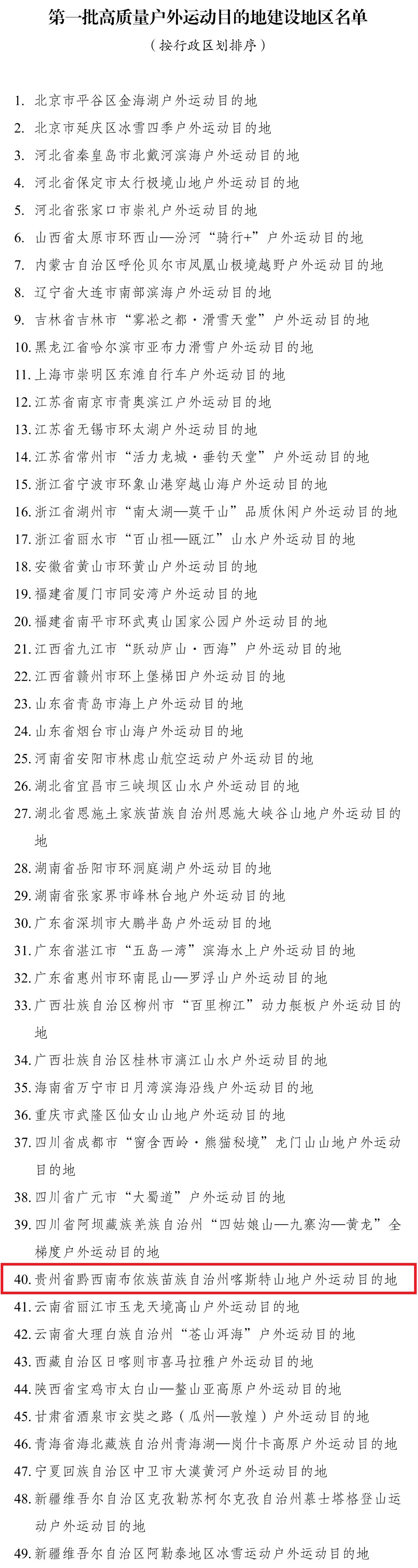 其中,贵州省黔西南布依族苗族自治州喀斯特山地户外运动目的地入选。