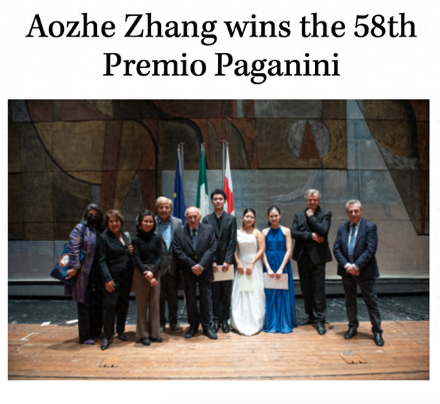 在意大利热那亚刚刚结束的第58届帕格尼尼国际小提琴比赛上,来自中国的17岁章奥哲成功夺冠。