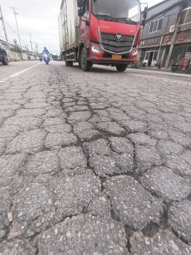 大型载重车辆往来频繁,让朝阳区皮村路的路面损毁严重。尤其是皮村路东段400余米的路面出现大面积龟裂、坑洼不平,影响行车体验和通行安全。