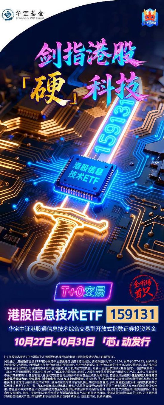 在二十届四中全会最新审议通过的“十五五”规划建议中,将“高质量发展取得显著成效、科技自立自强水平大幅提高”置于经济社会发展主要目标首要位置,并重点强调“抓住新一轮科技革命和产业变革历史机遇”和“全面增强自主创新能力、抢占科技发展制高点”。在10月15日举行的2025湾区半导体产业生态博览会上,新凯来、、上海微电子、电子、等众多中国硬科技龙头企业集中发布年度新品近2000件,彰显了芯片核心技术领域国产替代的突破性进展,这将国产芯片等核心硬科技产业的成长空间推升到了又一个新高度。千亿规模ETF大厂——华宝基金今日(10.27)启动全市场首只港股信息技术ETF(159131)全网发售,该基金为全市场首只跟踪中证港股通信息技术综合指数(简称“港股通信息C”)的ETF,其标的指数由属于信息技术产业的41只港股硬科技公司构成成份股组合,将为投资者参与把握港股“中国硬科技资产”投资机遇提供又一创新ETF工具。