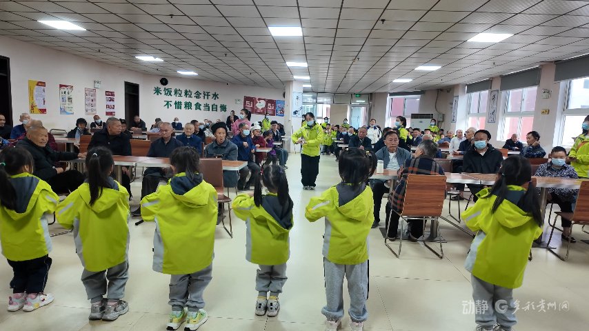 另一边,仁怀市城北幼儿园的孩子们近日走进颐康养中心,给老人们表演了《节约最光荣》《中华孝道》《大丰收》《星星》等精彩节目,活力满满的舞蹈,充满童稚的歌声,让笑容在老人们的脸上快乐绽放。在互动环节,老人和孩子们一同参与“棒棒糖鼓”音乐游戏,现场笑声不断。