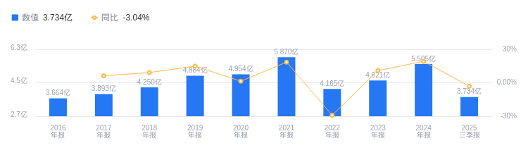 2025年三季度,众望布艺营业收入为3.73亿元,行业排名7/7,远低于第一名的33.85亿元和第二名的29.76亿元,也低于行业平均数15.12亿元和中位数10.99亿元。主营业务构成中,装饰面料2.36亿元占比98.36%,其他(补充)358.33万元占比1.50%,其他33.84万元占比0.14%。当期净利润为5239.93万元,行业排名5/7,同样低于行业第一名罗莱生活的3.4亿元和第二名水星家纺的2.32亿元,以及行业平均数1.52亿元和中位数1.6亿元。