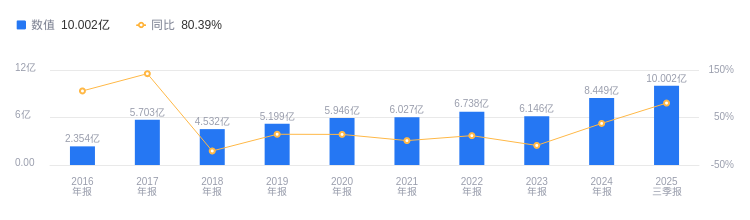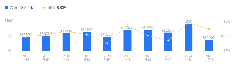 2025年三季度,紫江企业营业收入达78.22亿元,在行业8家企业中排名第1,行业平均数为18.26亿元,中位数为7.41亿元,第二名仅27.06亿元。当期净利润为10亿元,同样位居行业第1。