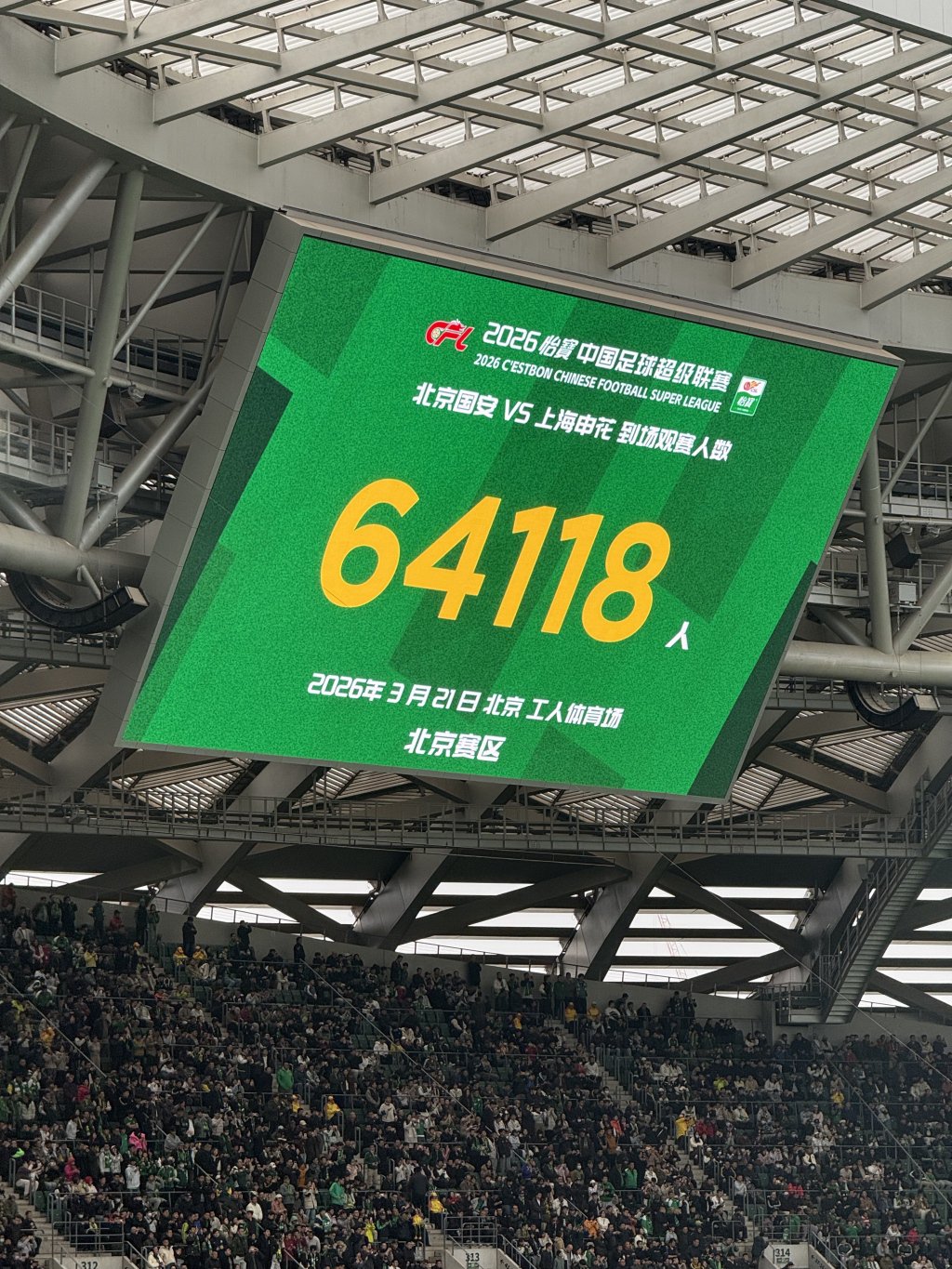 值得一提的是,本场比赛共有64118人现场观战,打破工体上座纪录,排名中超历史第2。