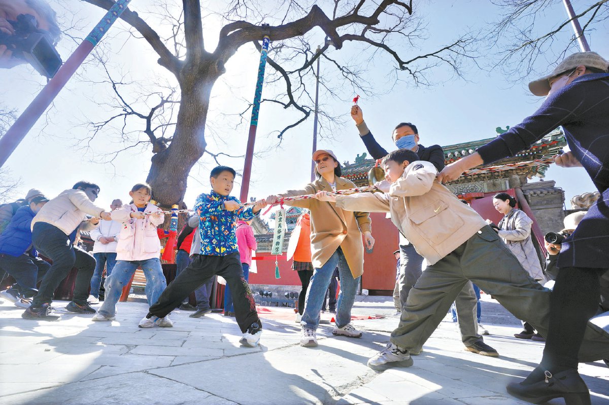 今天,北京民俗博物馆举办“古礼映清明 情思寄华夏”清明节文化活动,观众体验投壶、射柳、拔河等民俗游戏,制作风筝、青团,了解节气文化,享受春日快乐。 本报记者 程功 摄
