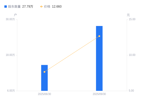 近一年(2025年3月31日至2026年3月31日),万向钱潮A股股东户数从9.5万户,增加至27.35万户,增幅187.86%,区间股价上涨112.24%。
