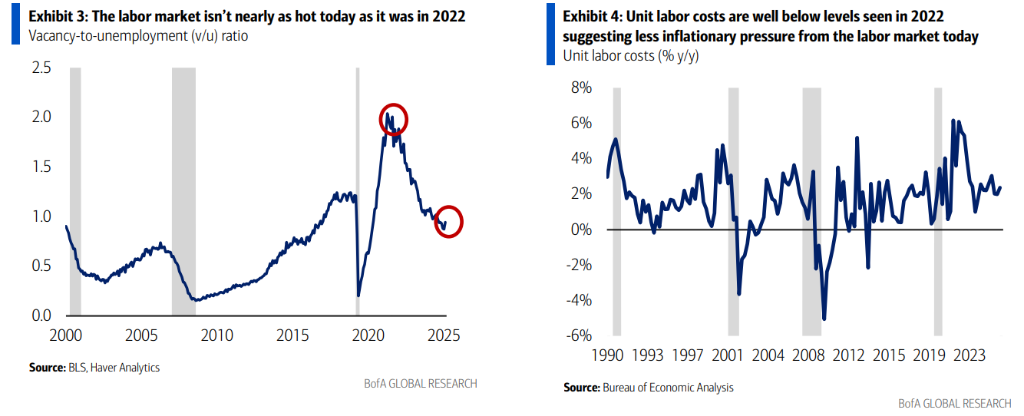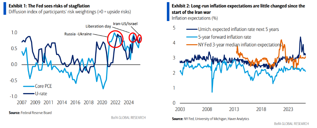 因此,美银认为,当前通胀主要源于能源等外生供给冲击,而非劳动力市场过热带来的成本推动型通胀,这为美联储将精力聚焦于下行风险管理提供了理论依据。