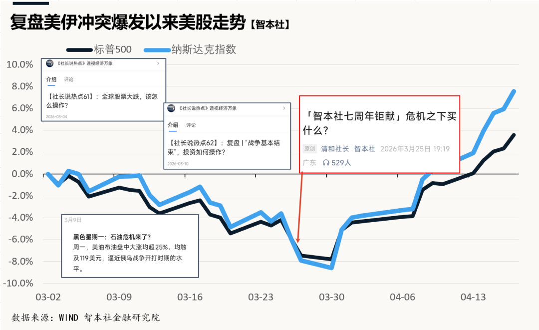 这两个判断至关重要。既然判断正确,那么市场恐慌引发的下跌,本质上就是机会。3 月 9 日 “黑色星期一” 当天,我就发文提出如果大跌即是机会,之后在社长说热点62中也再次重申这一观点。3 月 25 日专门发布硬核长文《危机之下买什么?》,深入分析冲突时期的风险与机会,覆盖多类资产,并明确提出:当下正是买入并持有优质资产的好时机。