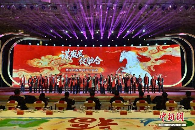 图为演员在联谊活动上表演开场节目《新爱拼才会赢》。中新社记者 张斌 摄