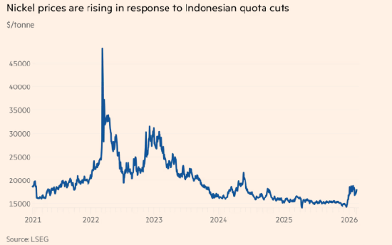 今年 1 月,巴西矿企称,因尚未获得印尼官方发放的 2026 年相关审批文件和产量配额,该公司已被迫暂停在印尼的镍矿开采业务。