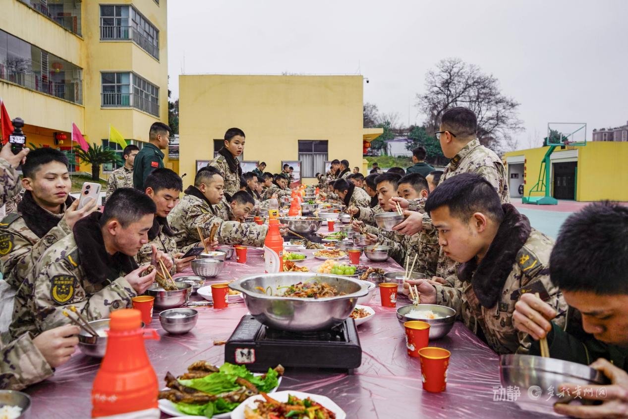 万家团圆除夕夜,军营年味别样浓。今年除夕,武警贵州总队贵阳支队营区里,干部骨干接连吃两顿年夜饭,这看似“特殊”的举动,背后却有着一份藏在烟火气里的爱兵初心,一段暖到官兵心坎里的温情故事。