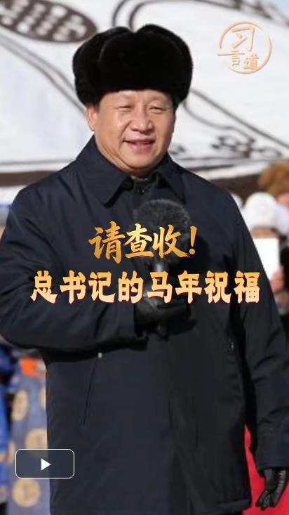 “让我们拿出跃马扬鞭的勇气,激发万马奔腾的活力,保持马不停蹄的干劲,一起为梦想奋斗、为幸福打拼,把宏伟愿景变成美好现实。”农历马年春节临近,请查收,总书记的马年祝福!