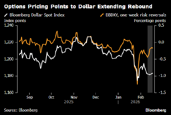 彭博美元即期指数在伦敦交易时段维持小幅涨幅,尽管日元走强。这两天的反弹让美元暂获喘息,自唐纳德·特朗普重返白宫以来,美元持续承压。美国银行近期一项调查显示,投资者对美元的敞口降至至少2012年该数据开始搜集以来的最低。
